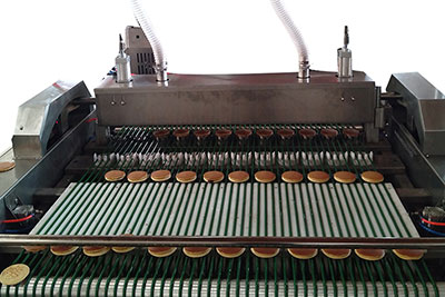 - Double Color Cookie DepositorThis cookie manufacturing equipment is designed with coMPact construction and high flexibility, made up of dough mixer, dough roll, dough feeder and dough molder. A wide range of biscuit types can be achieved through changing of molds. Read More